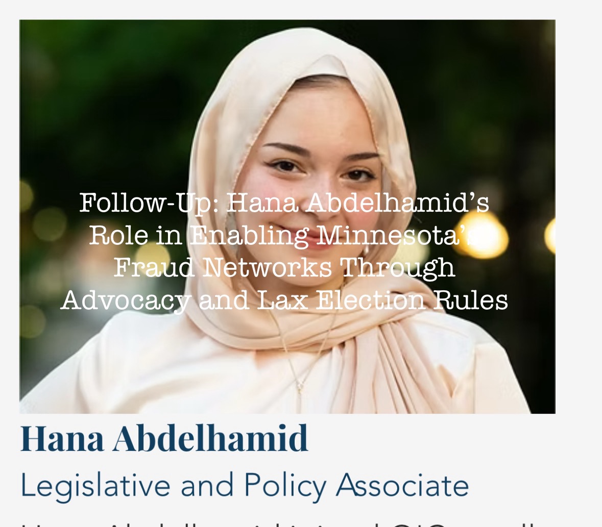 This advocacy aligns with her network’s pattern: TakeAction Minnesota and Faith in Minnesota have championed voting rights expansions, dismissing fraud concerns as unfounded while ignoring evidence of systemic exploitation elsewhere. By enabling rules that violate laws on secure elections, Abdelhamid contributes to a broader environment where fraud thrives under the cover of “equity.”