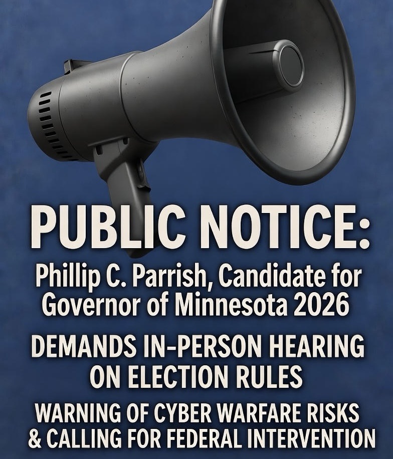 As Phillip C. Parrish—retired U.S. Navy Lieutenant Commander, counterterrorism expert, farmer, educator, and your Candidate for Governor of Minnesota in 2026—I’m issuing this urgent call to action. Our state’s election integrity hangs by a thread. The proposed permanent rules on elections administration (Revisor’s ID R-4824, CAH Docket No. 8-9019-39440, Minnesota Rules Chapters 8200-8250) are a sham—weak tweaks that ignore bloated voter rolls (3.6 million registered against 4.2 million voting-age population), ghost additions, non-citizen vulnerabilities, and foreign software risks like Konnech. These rules defy federal laws like the NVRA (52 U.S.C. § 20507) and HAVA (52 U.S.C. § 21083), as validated by the DOJ’s September 25, 2025, lawsuit against SOS Steve Simon. But the real outrage? The October 10, 2025, virtual hearing is rigged to fail, with an invalid WebEx link (https://minnesota.webex.com/minnesota/j.php?MTID=m1f44e2d53f502afc3324060419e48916) spitting “Page Cannot Be Found” errors (tracking ID: 2CA9A7D8120C4B7B945FB0653F0985CC_1759581327214)—a widespread complaint blocking over 100 voices, including mine.
