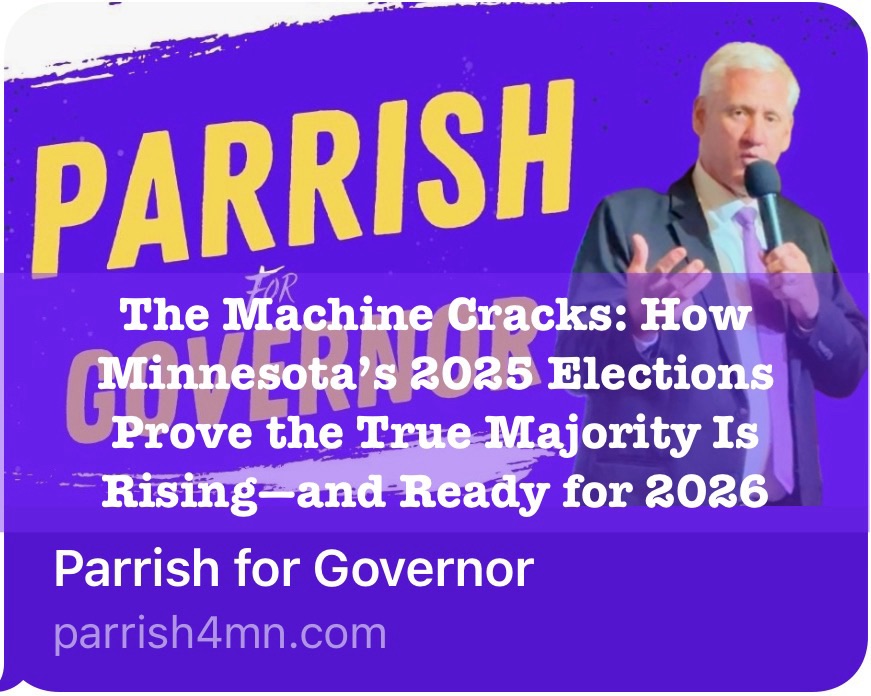 Minnesotans, 2026 isn’t a pipe dream—it’s our deadline to reclaim what’s ours. Visit parrish4mn.com to read the full platform, volunteer your time, talent, or treasure, and follow @phillipcparrish on X for real-time updates. Together, we’ll build a stronger, fairer Minnesota.