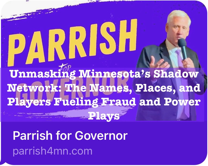 Drawing from audits, federal raids, and the paper trail on my site (parrish4mn.com/news), here’s the pattern: Concentrated in the metro—Minneapolis, St. Paul, Minnetonka—where big companies like UnitedHealth pull strings, DFL pols like Tim Walz look the other way, and “nonprofits” like Feeding Our Future launder cash. It’s not conspiracy theory; it’s court docs, OLA reports, and DOJ charges. And it’s why, as your next Governor, I’ll rip it open with independent probes and RICO-level accountability.