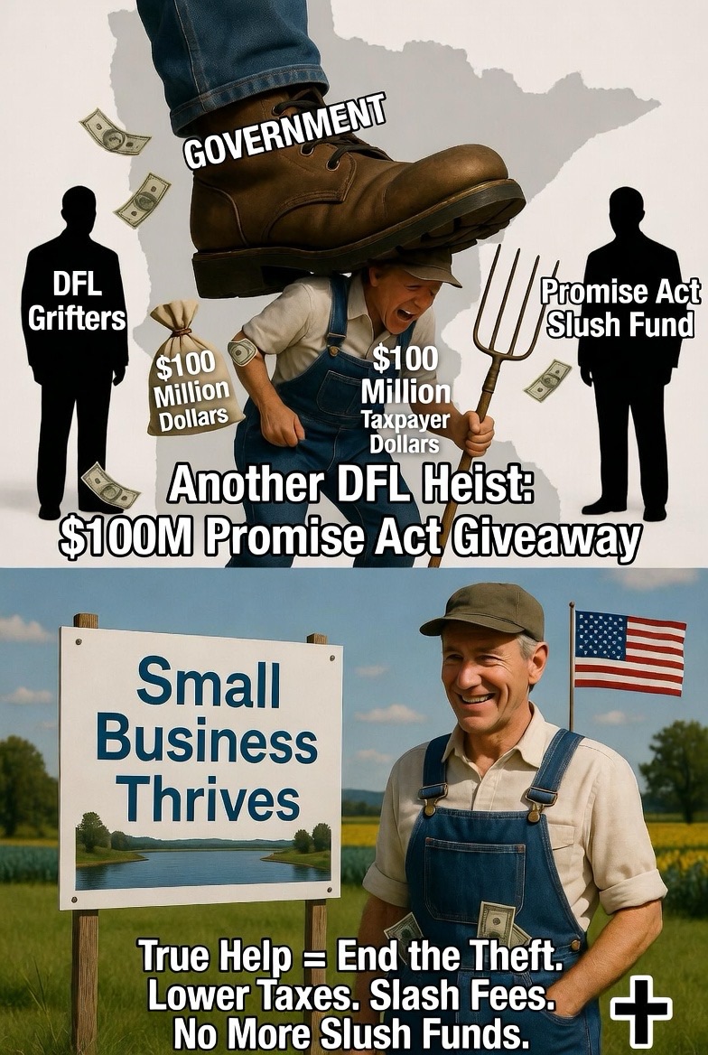But here’s the vision—the real one—for Minnesota under a Parrish administration. We don’t need more rigged “programs,” “incentives,” or slush funds run by insiders. True help means getting the government’s boot off hardworking necks and letting families and small businesses keep what they earn.