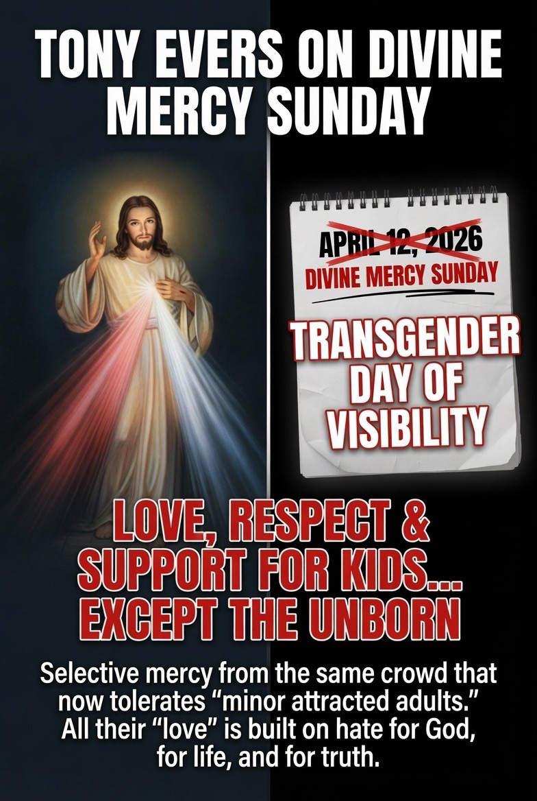 Spare us the fake piety, Tony. Divine Mercy Sunday is when the Church celebrates God’s infinite mercy, the blood and water from Christ’s side, and the call to trust in Jesus while rejecting sin and protecting the innocent. It’s the octave of Easter—pure resurrection hope and the sanctity of every human life from conception.