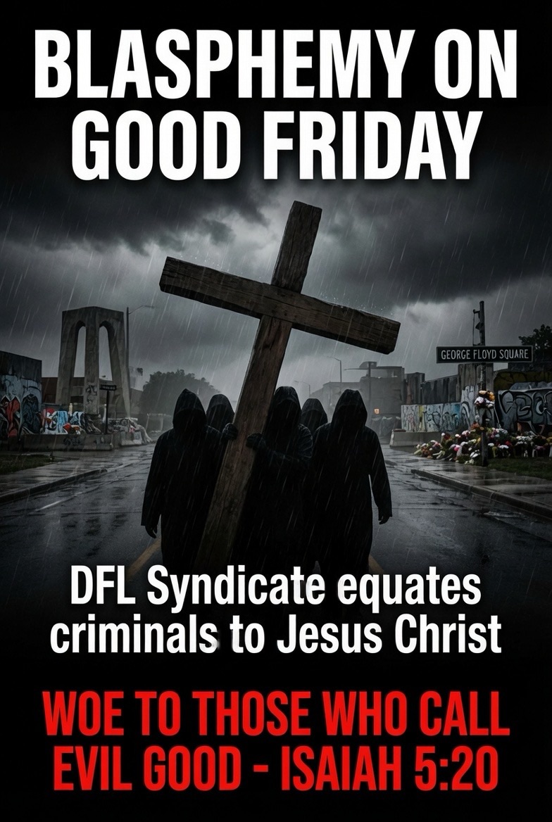 On Good Friday—while Christians across Minnesota bowed before the true Cross of our Lord Jesus Christ, who laid down His life for the sins of the world—the DFL crime syndicate and their hand-picked church cutouts staged a grotesque “crucifixion pilgrimage” through Minneapolis.