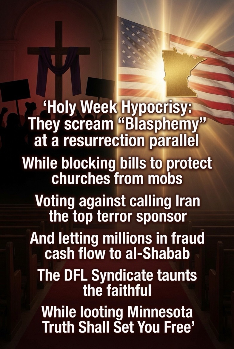 This isn’t random outrage. It’s the DFL machine and its national allies exposing their true face: anti-Christian zealots who taunt believers while their policies funnel your tax dollars to the very terror networks that despise the cross. They destabilize our cities, rig our systems, and loot the republic – all while lying to your face that it’s “compassion.” As a retired Navy intelligence officer who’s spent years blowing the whistle on Minnesota’s daycare fraud networks, election grift, and COVID cash heists, I see the pattern crystal clear. And so should every Minnesotan who’s had enough of being played for fools.
