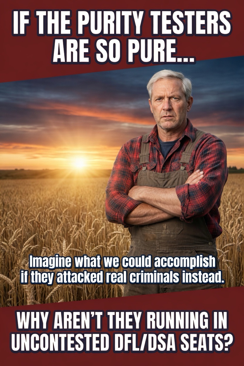 Those safe, rigged districts where the syndicate’s candidates cruise to victory without a real fight? The ones the DFL machine treats like their personal ATM? Funny how the loudest finger-pointers never put their own “pure” names on the ballot there. They’d rather sit in safety, sniping at patriots doing the hard work.